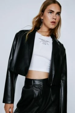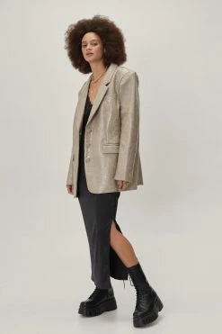 Real & Faux Leather Outfits Faux Leather Croc Embossed Oversized Blazer