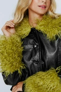 Real & Faux Leather Outfits Faux Leather Mongolian Trim Jacket