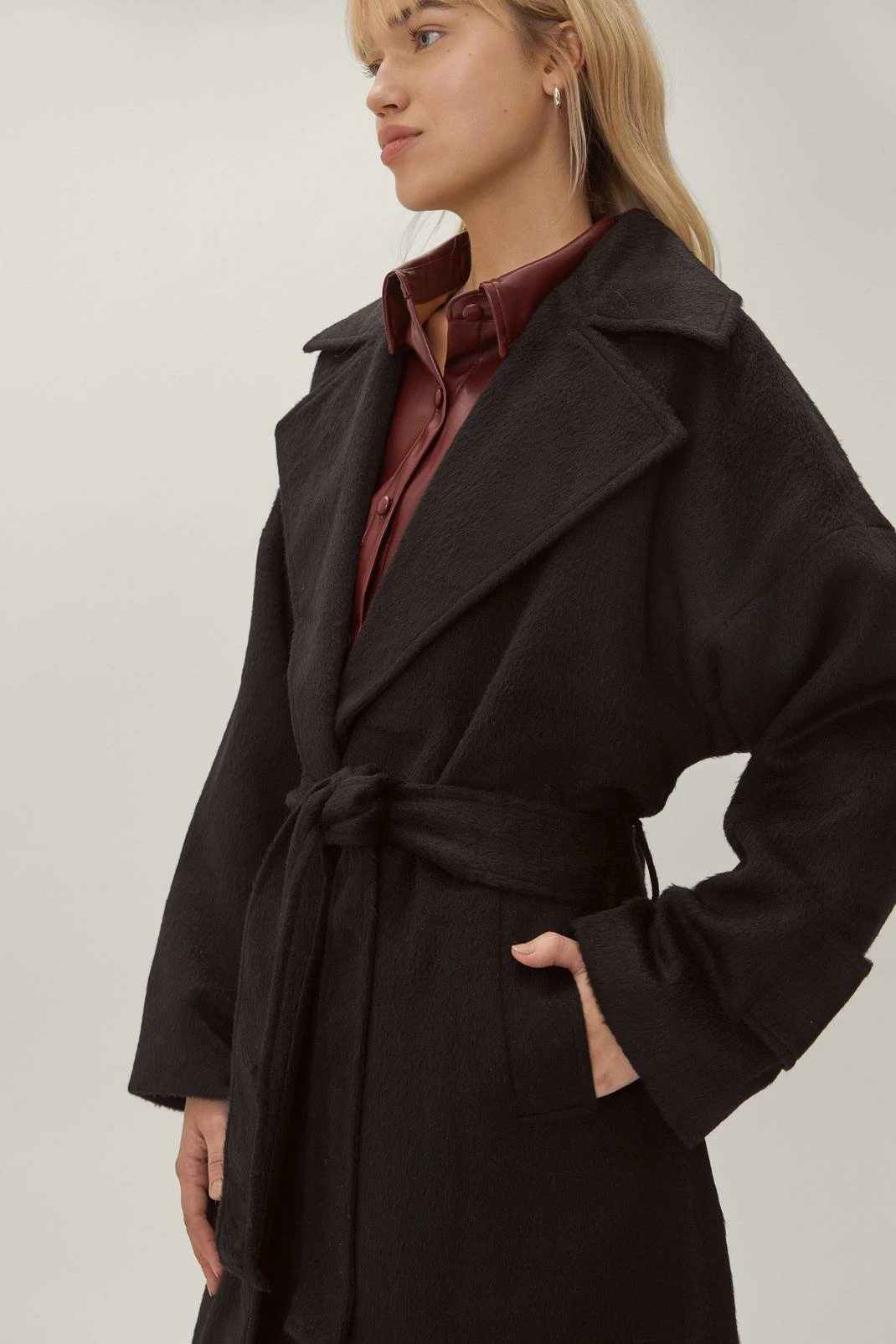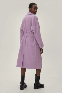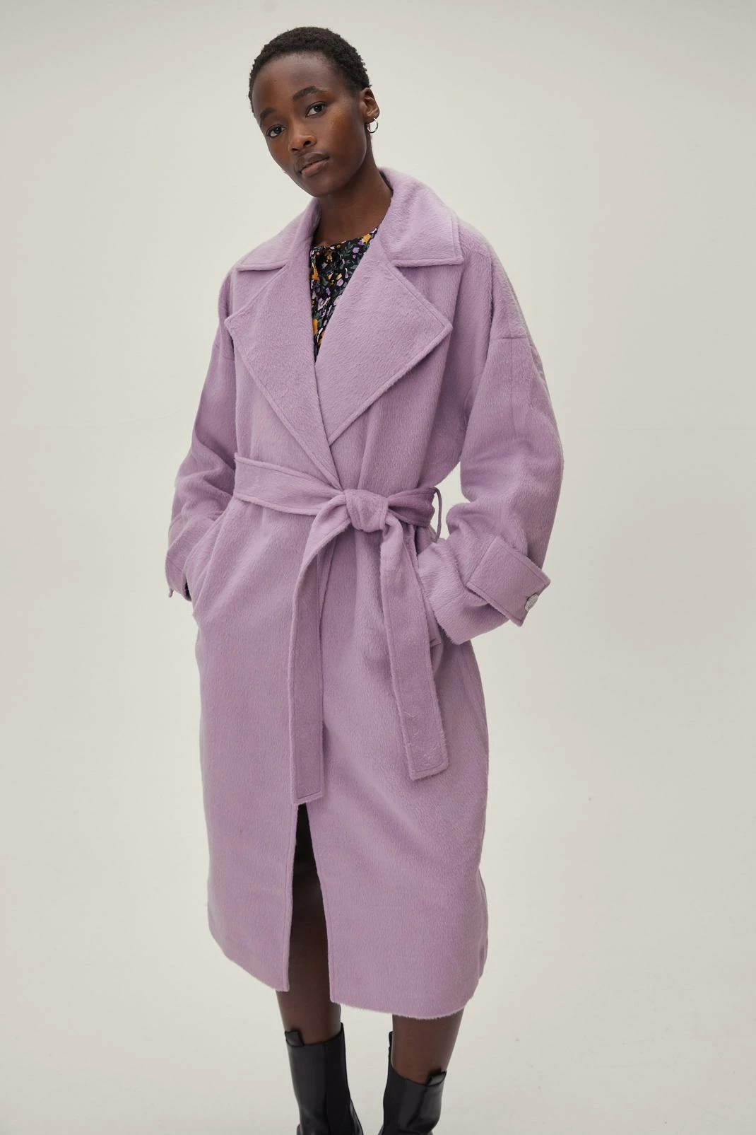 This wool-look coat features a single-breasted design, relaxed longline silhouette, turndown pointed collar, oversized notched lapels, open front design, detachable belt at waistline, long sleeves, and center back vent. A covetable coat collection isn’t complete without a wool-look number. Layer yours over floral tea dresses and leather-look pants.