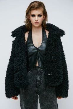 Faux fur main: 100% Polyester, Lining: 100% Polyester. Dry clean only.