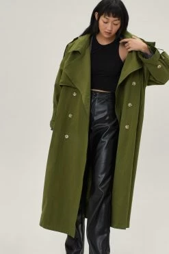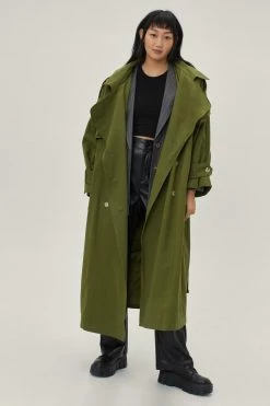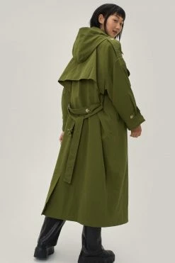 - Style: Hooded Oversized Belted Trench Coat