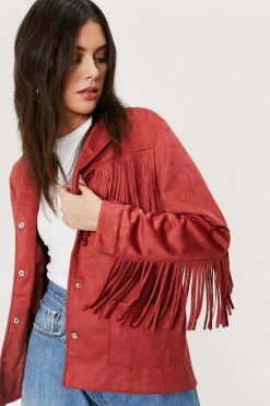 Introducing the I Feel Love Pride ’21 Collection – a celebration of love in all its forms. Featuring graphic t-shirts made on gender-neutral blocks and retro garms inspired by musical icons. This jacket comes in faux suede and features a V neckline, notched lapels, relaxed silhouette, button down closure, long sleeves, and fringe detailing. Jackets for living your best life in.