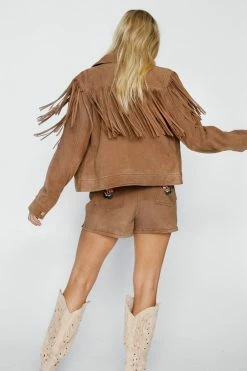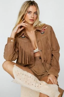 Suede Fringed Embroidered Jacket