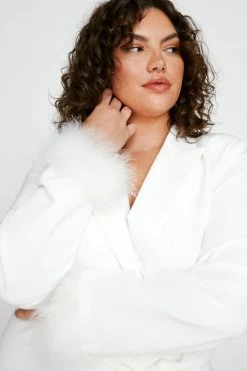 Fabric: 100% Polyester. Ostrich fur trim. Hand wash only.