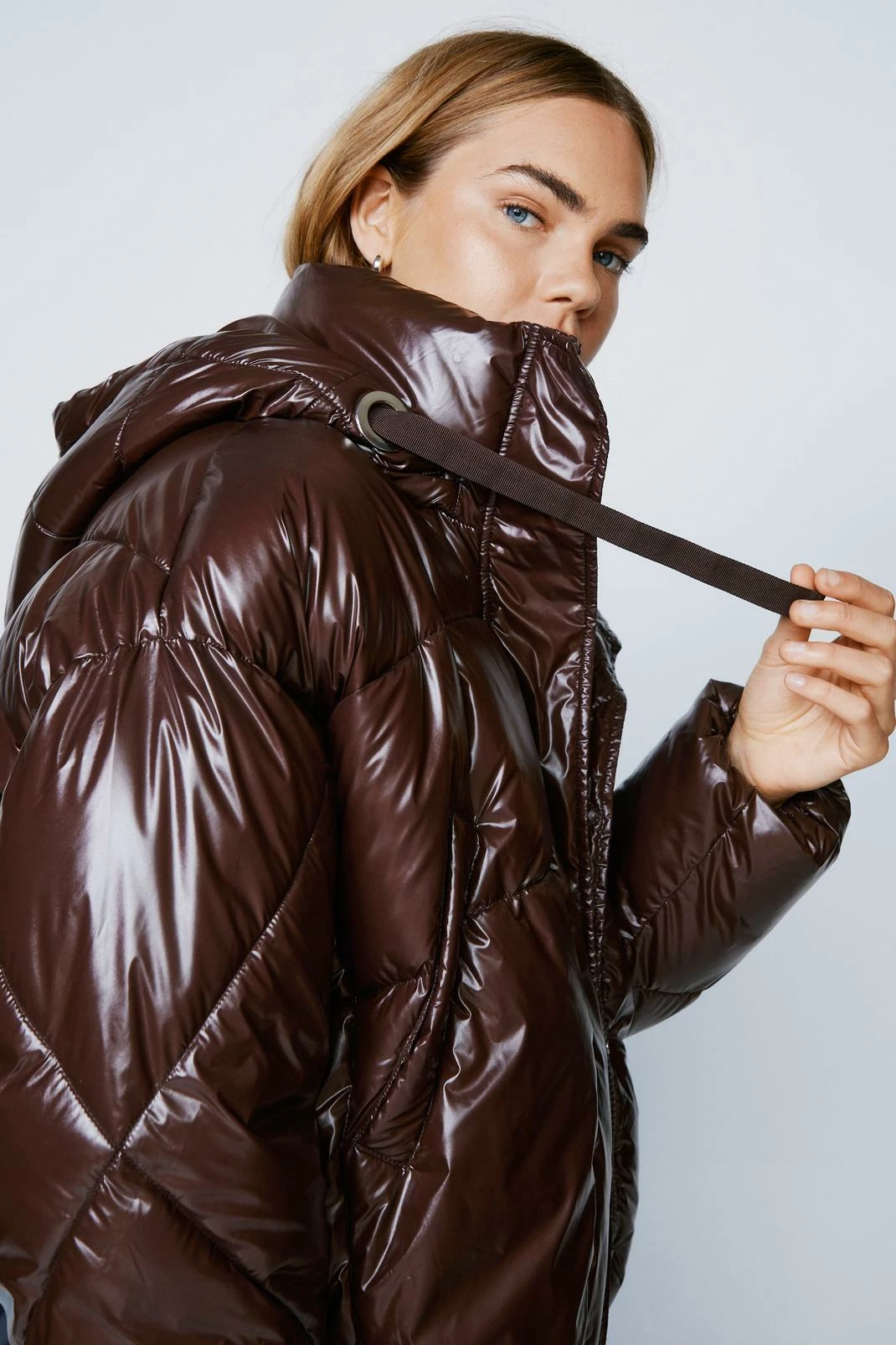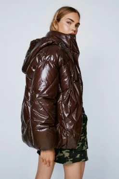 - Padded High Shine Hooded Jacket