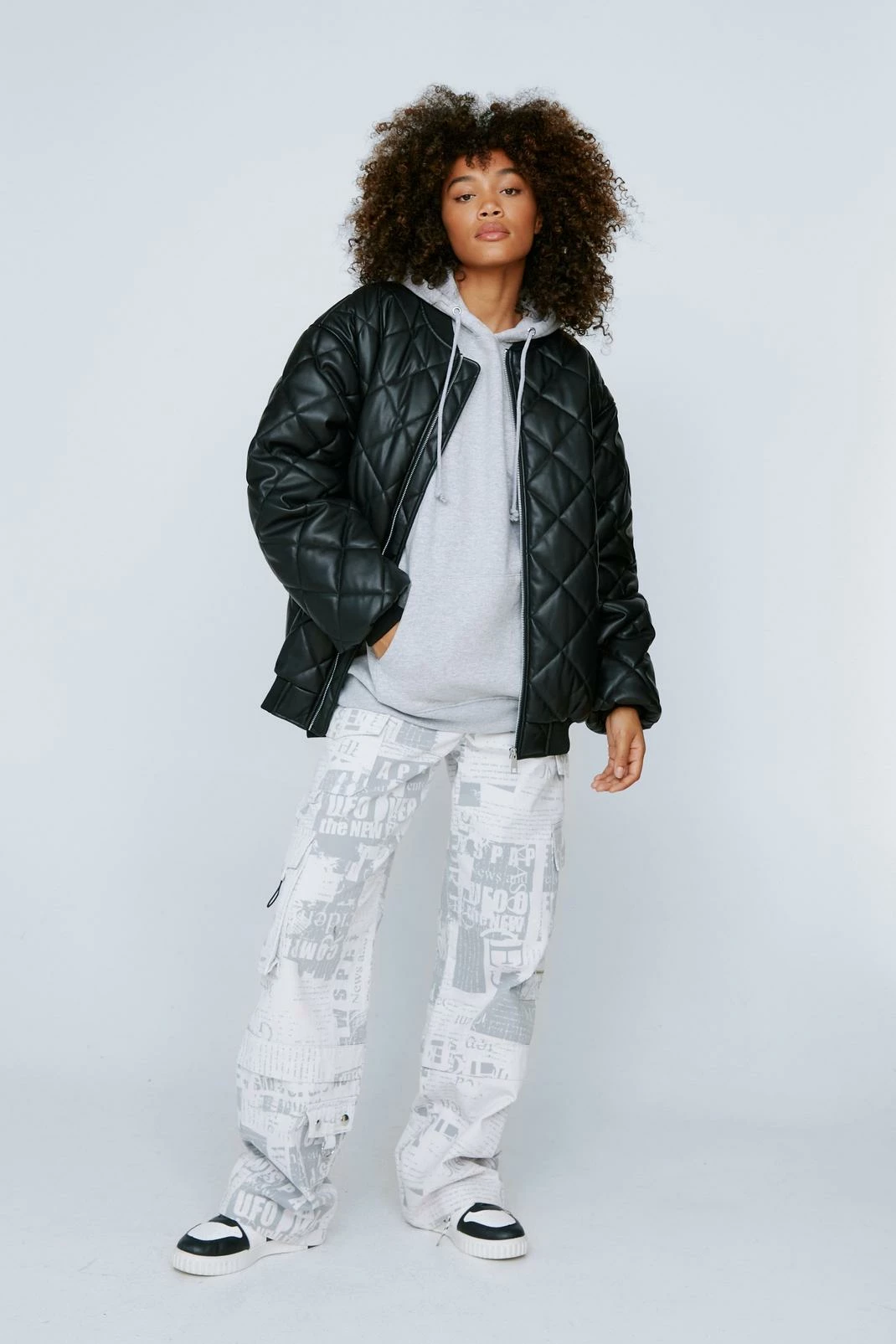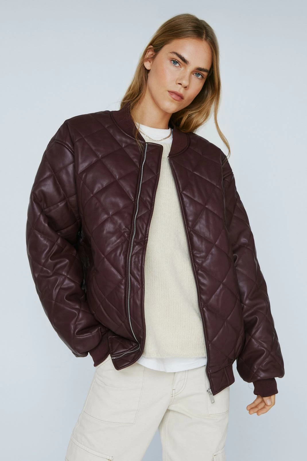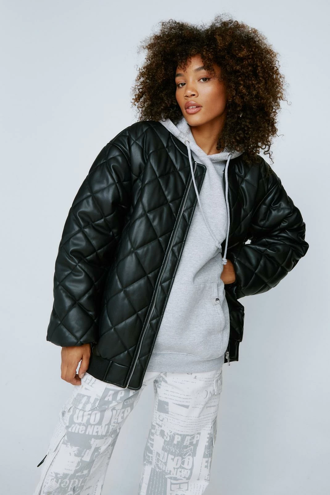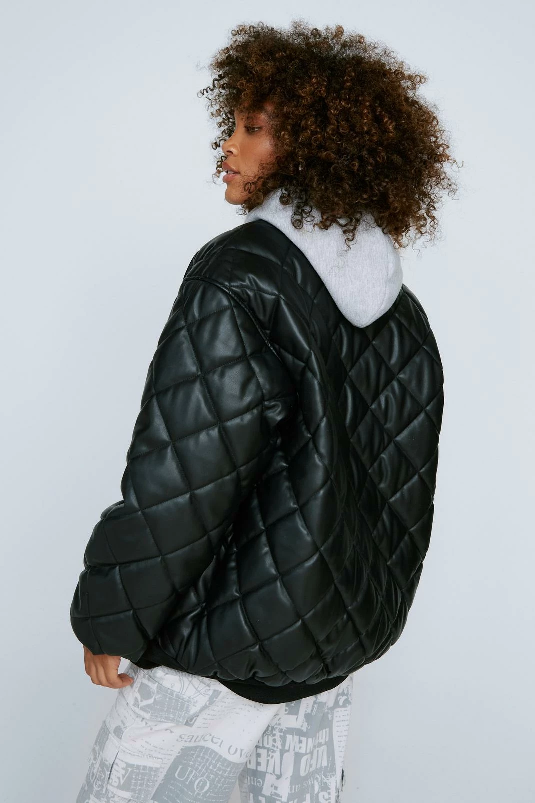 - Quilted Faux Leather Bomber Jacket