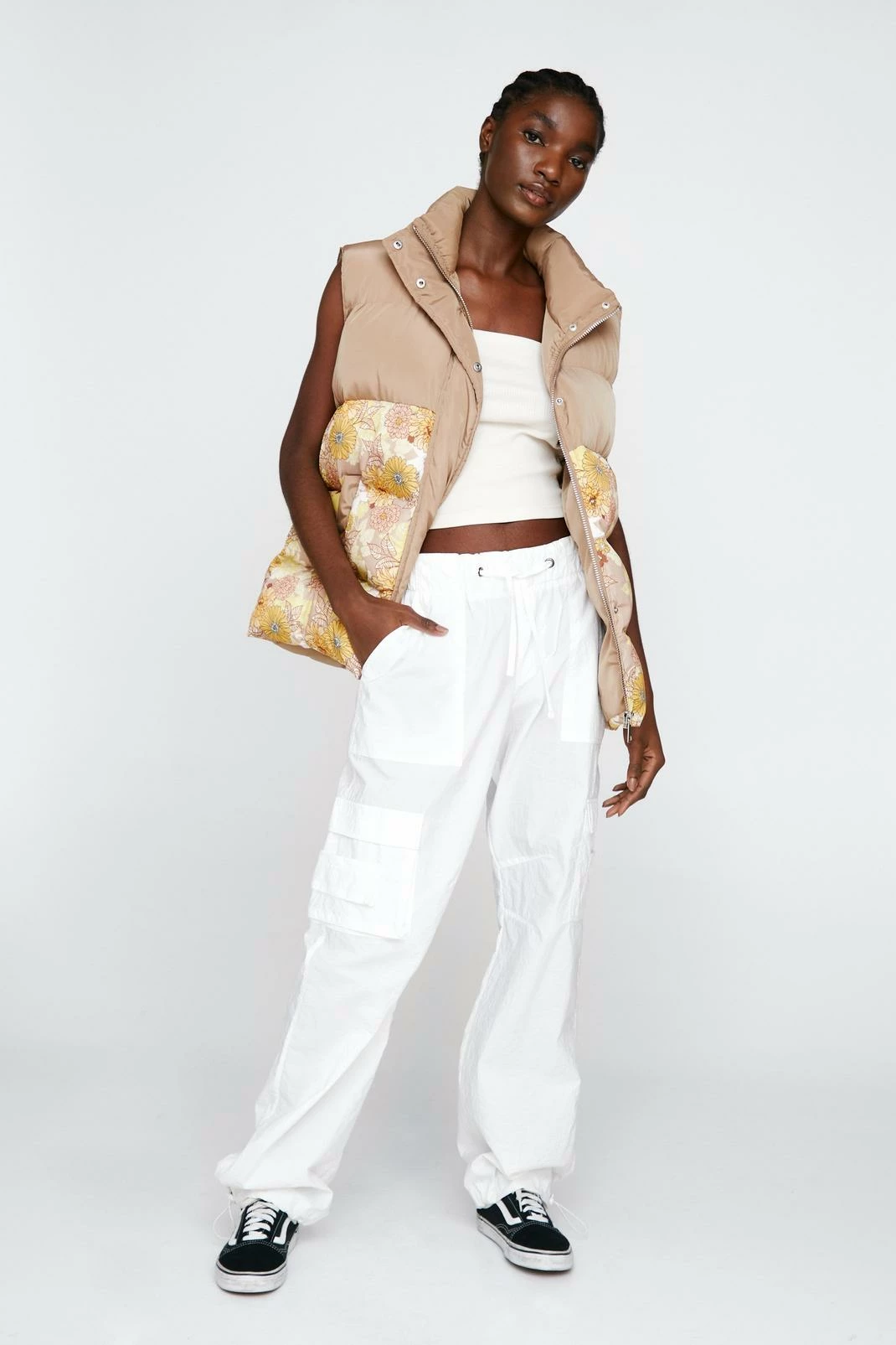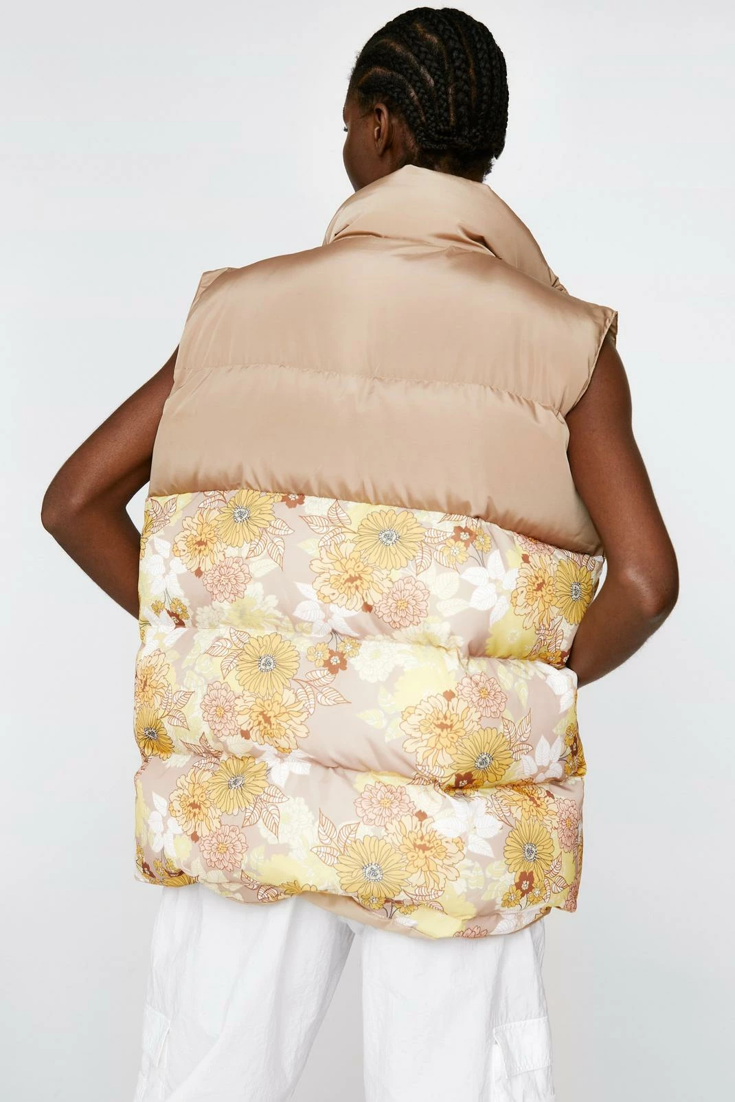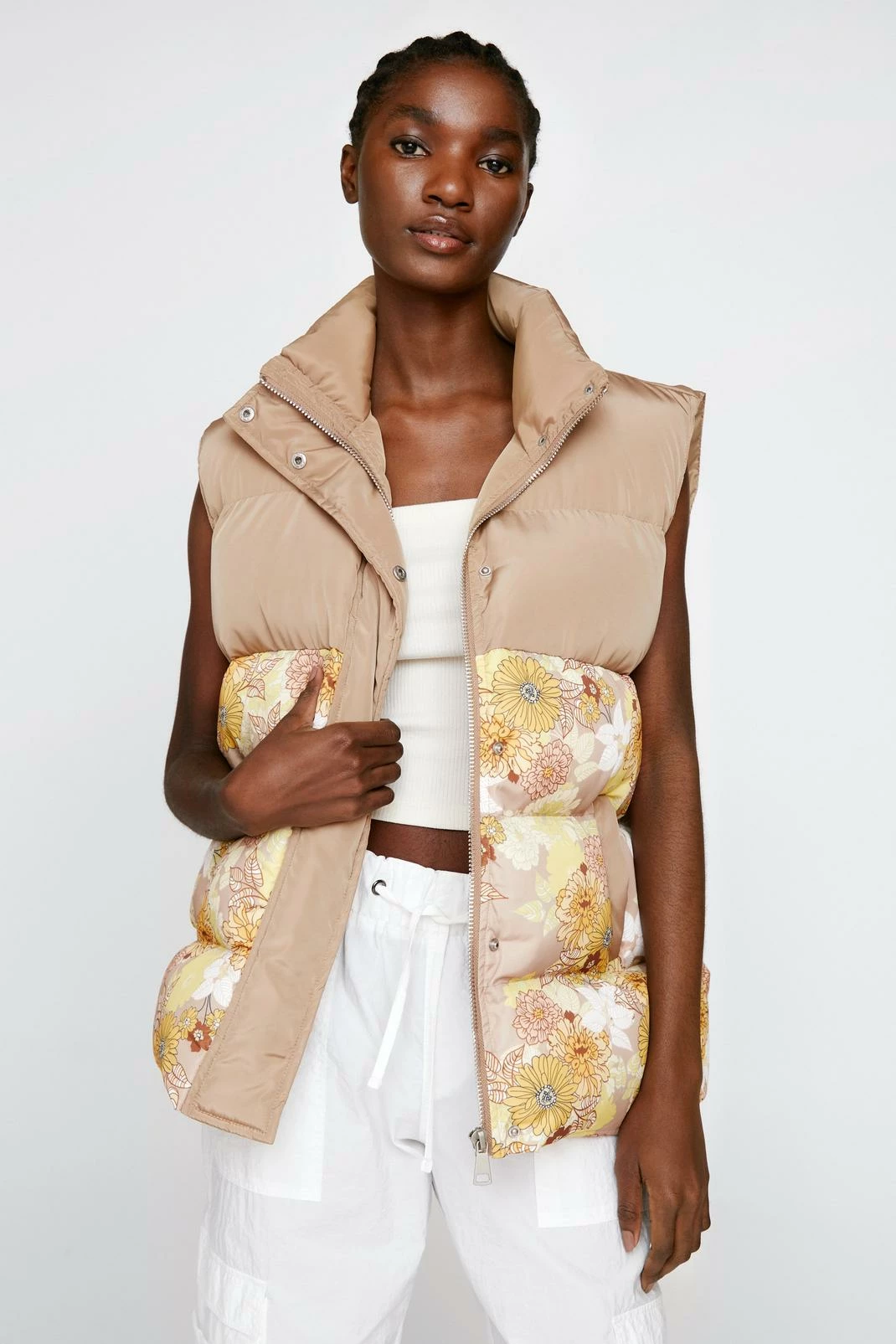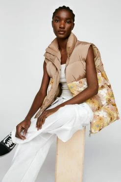 - Color Block Floral Print Padded Gilet