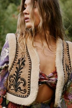 - Suede Cropped Embroidered Gilet
