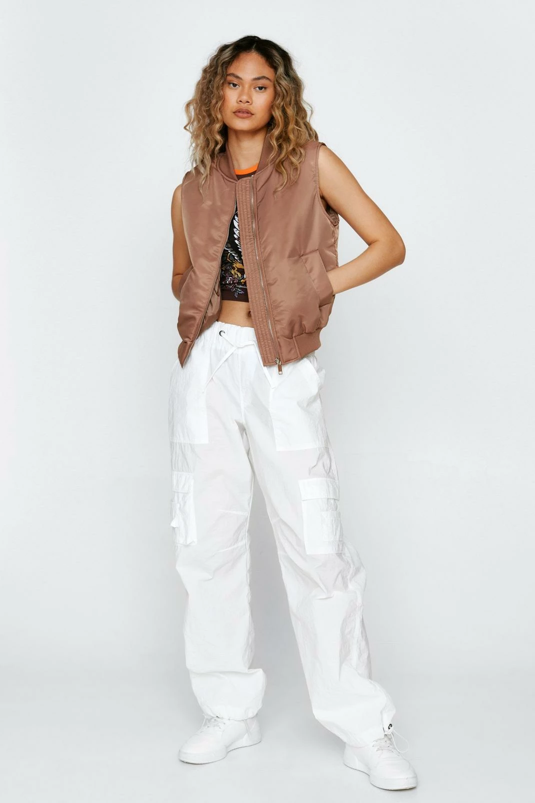 Layer up. Style with cargo pants, a graphic vest top, and sneakers.