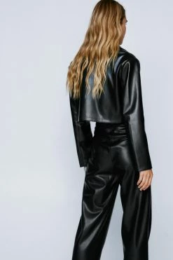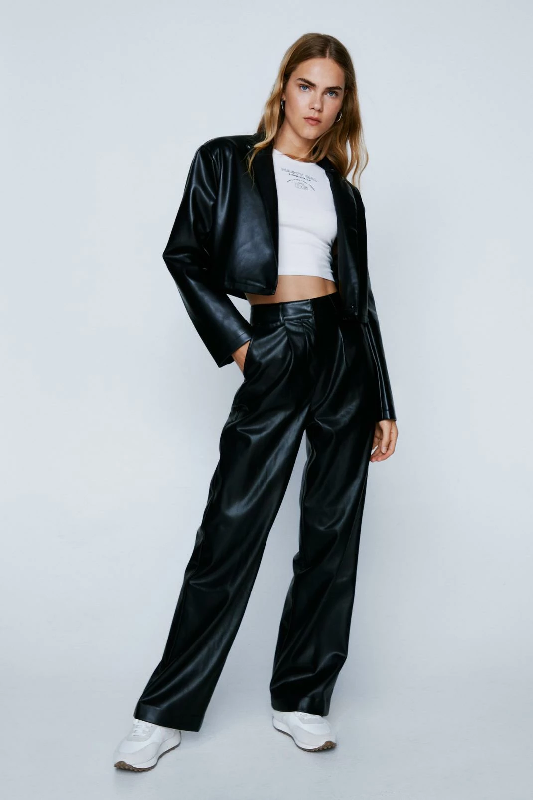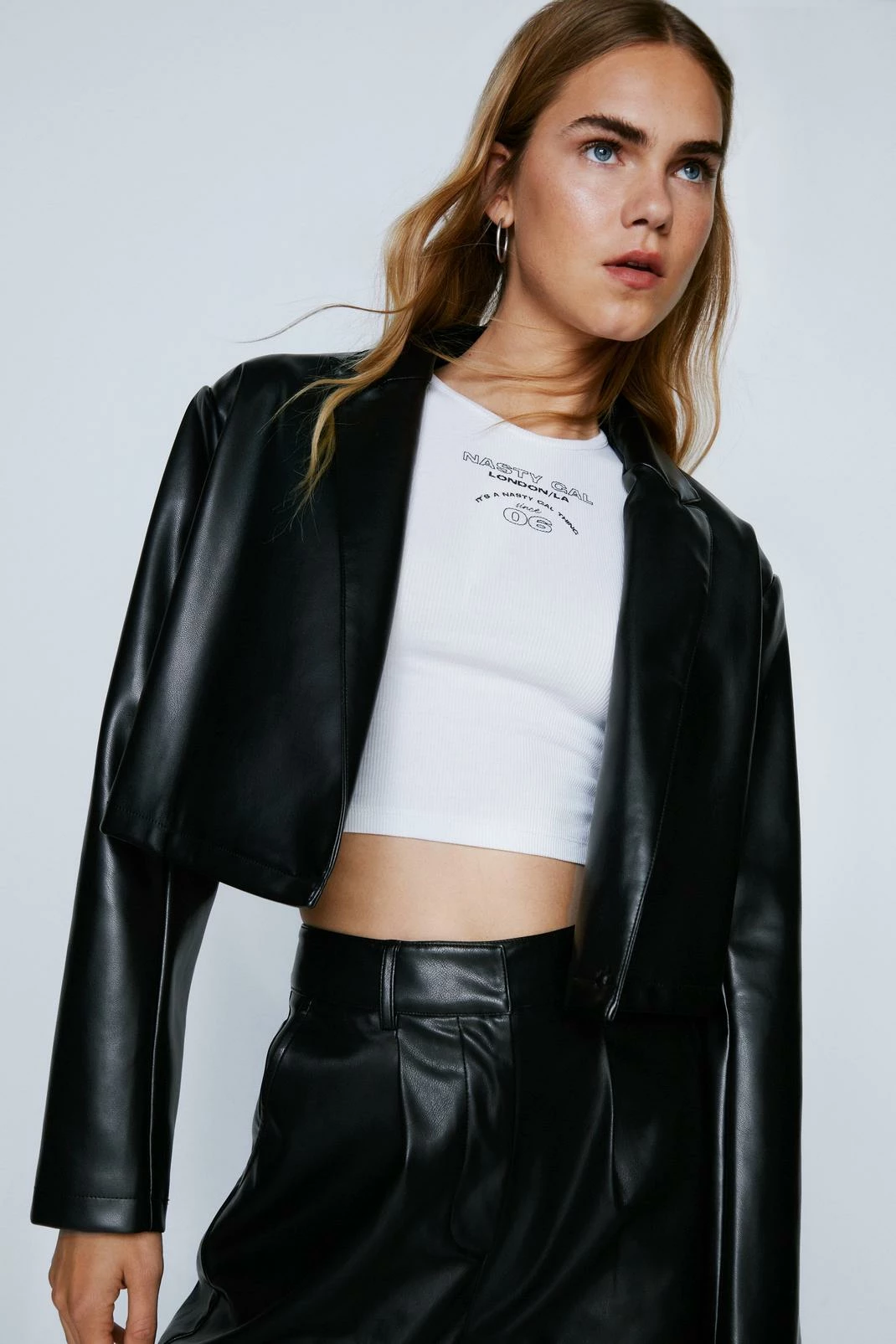 Staple season. Simple cropped faux leather blazer, perfect for changing seasons.