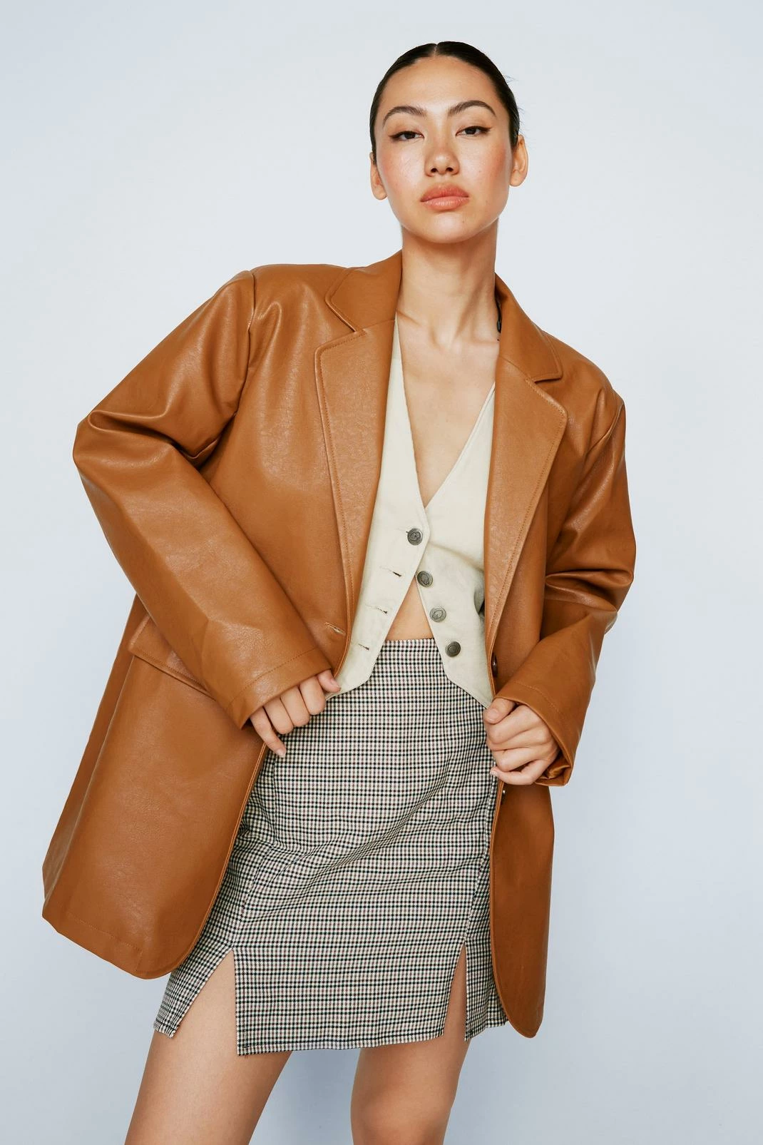 Fabric: 100% Polyurethane Backing: 100% Cotton Lining: 100% Polyester. Model Wears US Size 6/ UK Size 10. Wipe Clean.