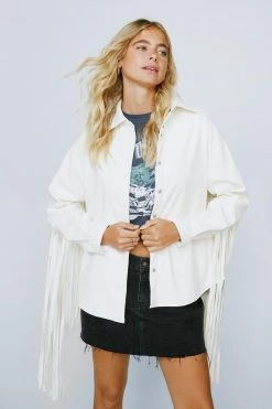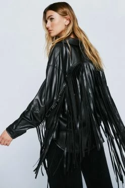 - Style:Fringed Faux Leather Shirt Jacket