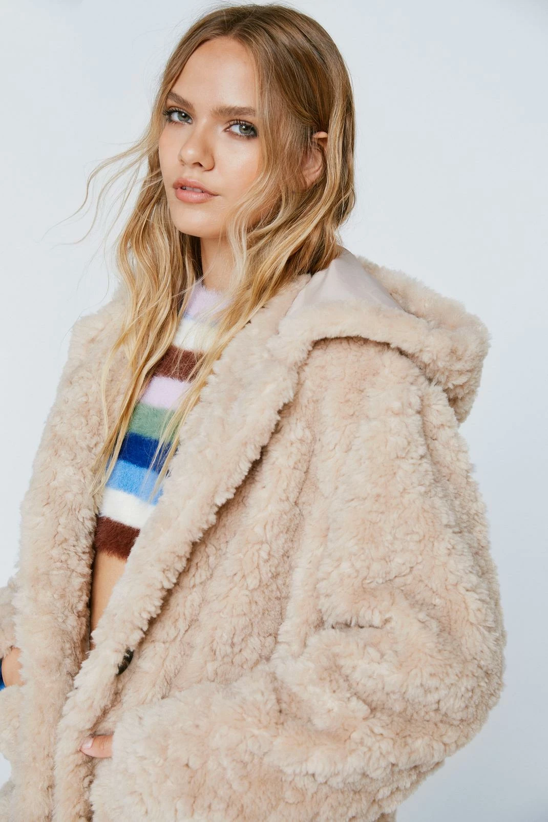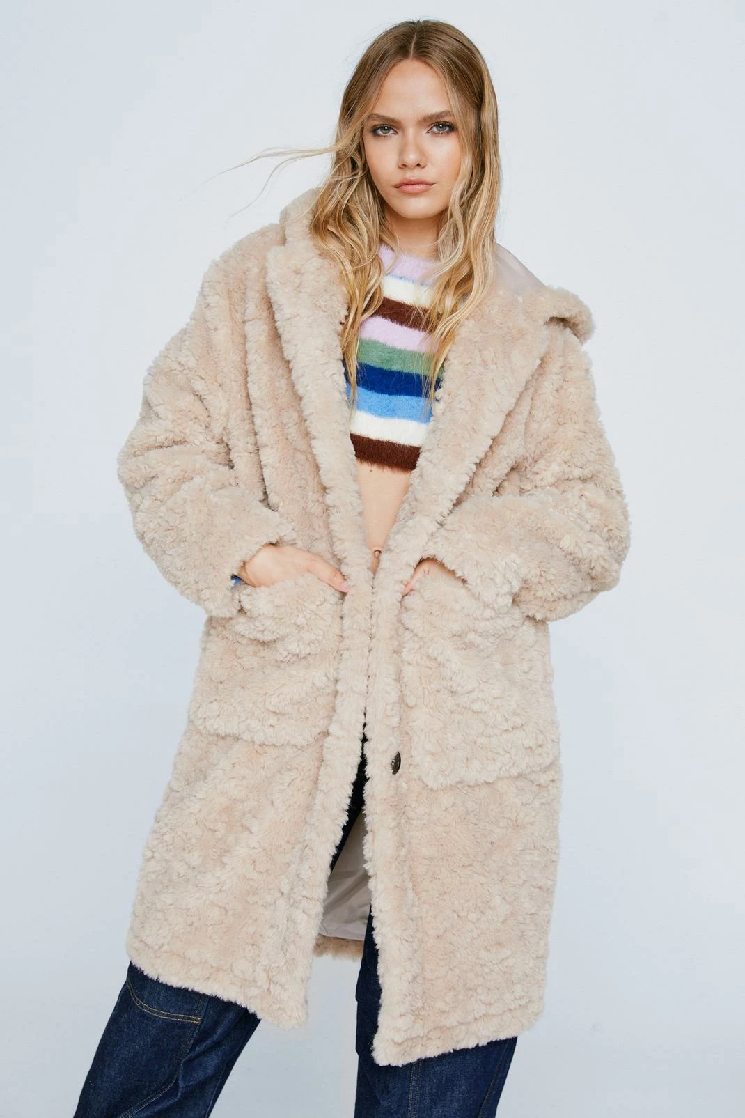 Cozy up. Faux fur teddy coat for when the cold days roll in.