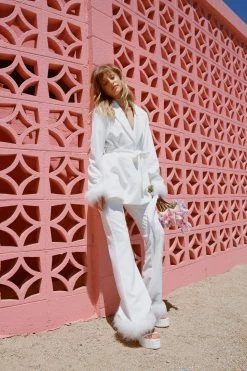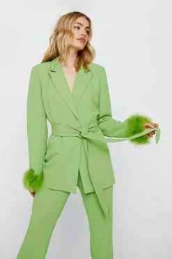 - Belted Blazer with Feather Cuffs